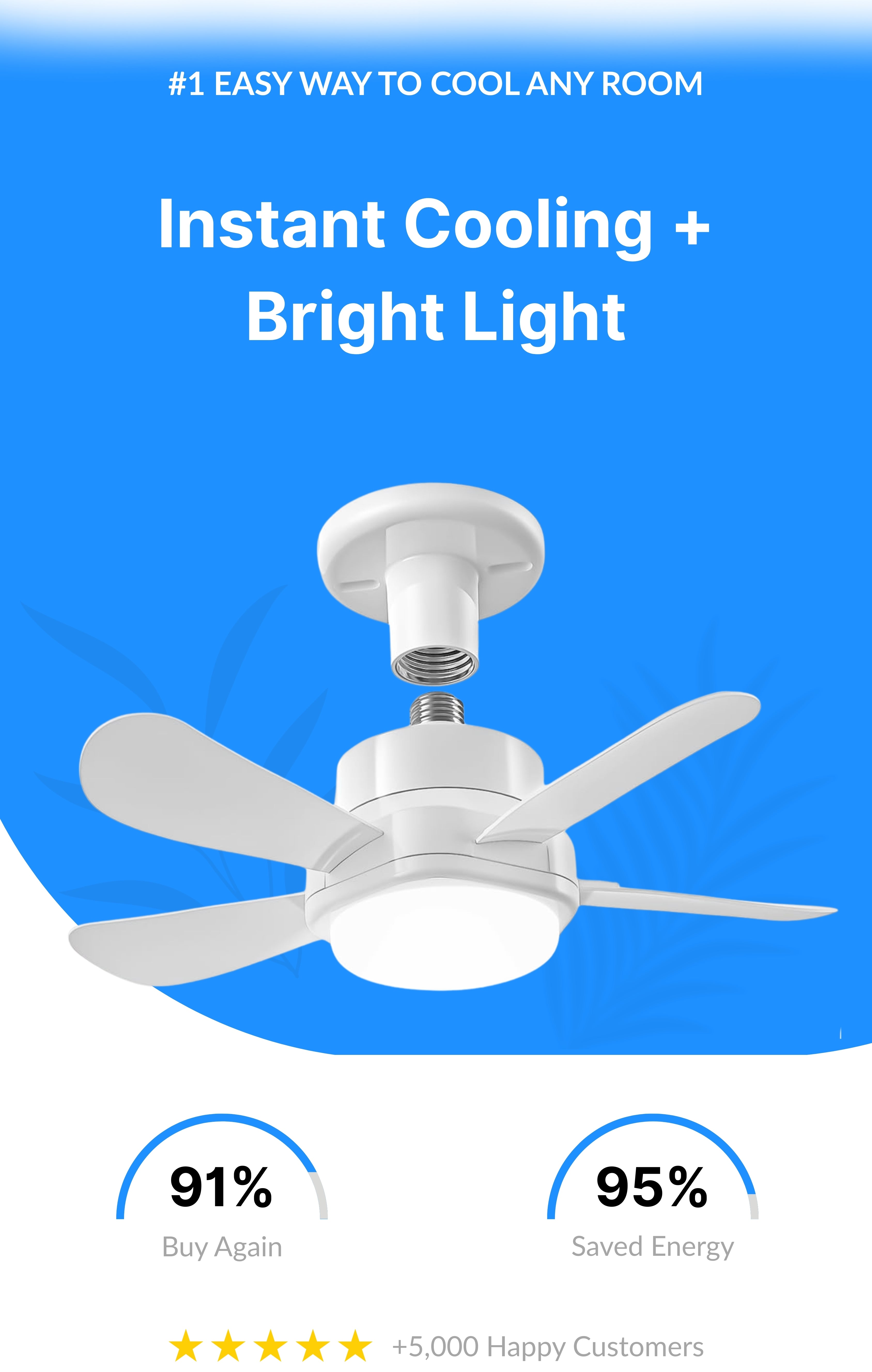 Simply screw it in, turn on the switch, and enjoy cool comfort in seconds.